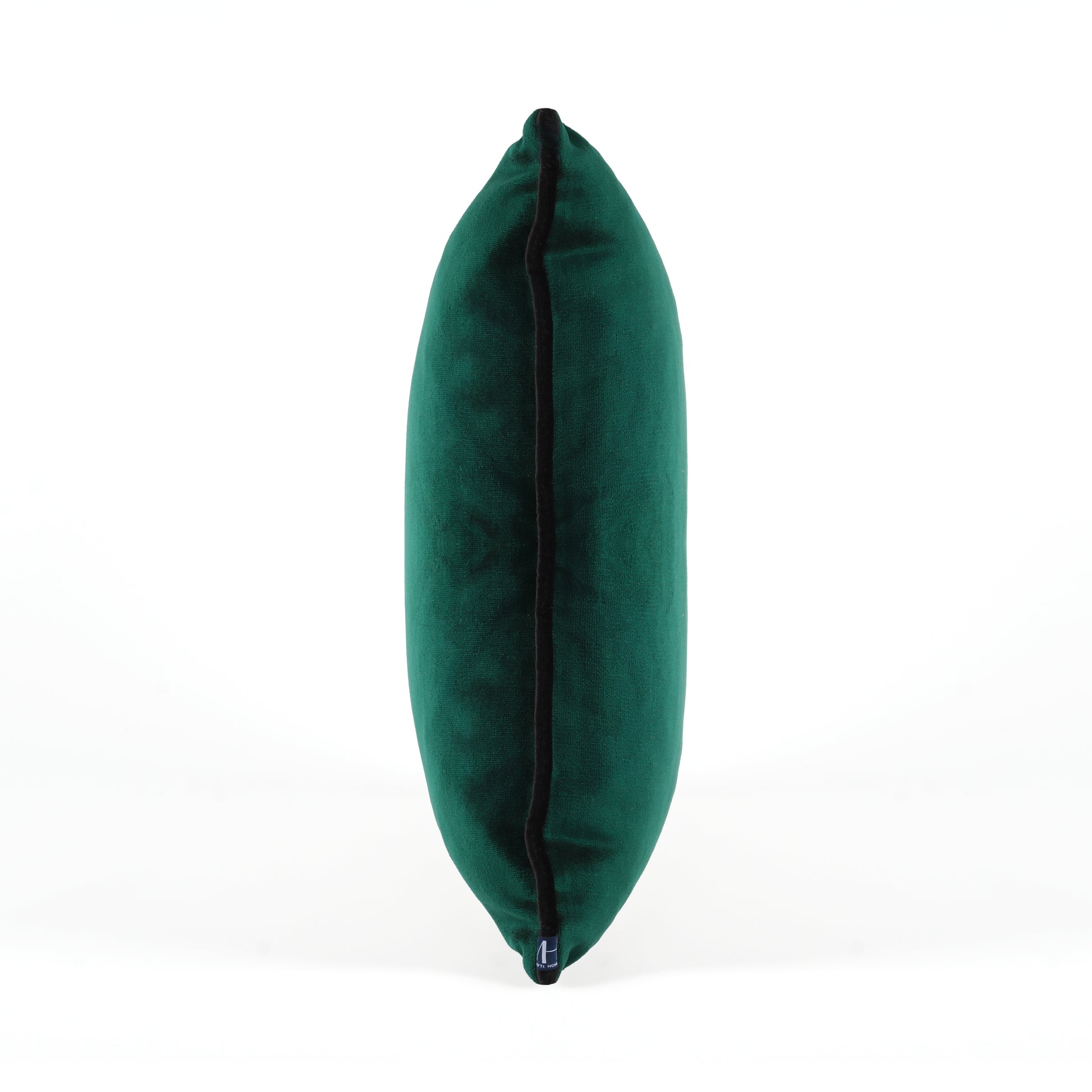 This pillow reflects the richness of traditional homes and timeless interiors. The deep emerald velvet brings a sense of calm and luxury, while the black edge gives it a classic look. Part of the Heritage Collection, it’s a simple way to add color, warmth, and cultural charm to your space.